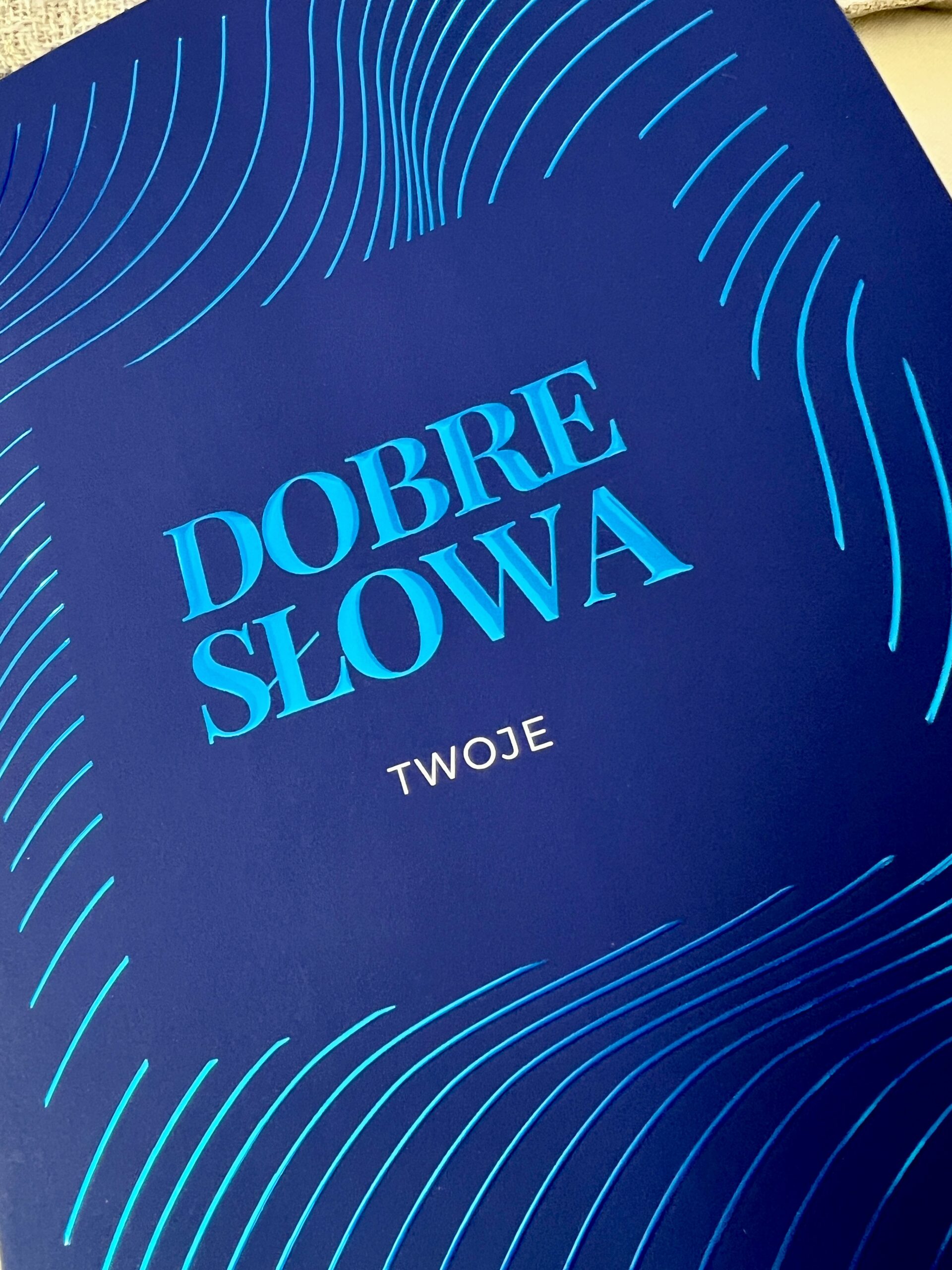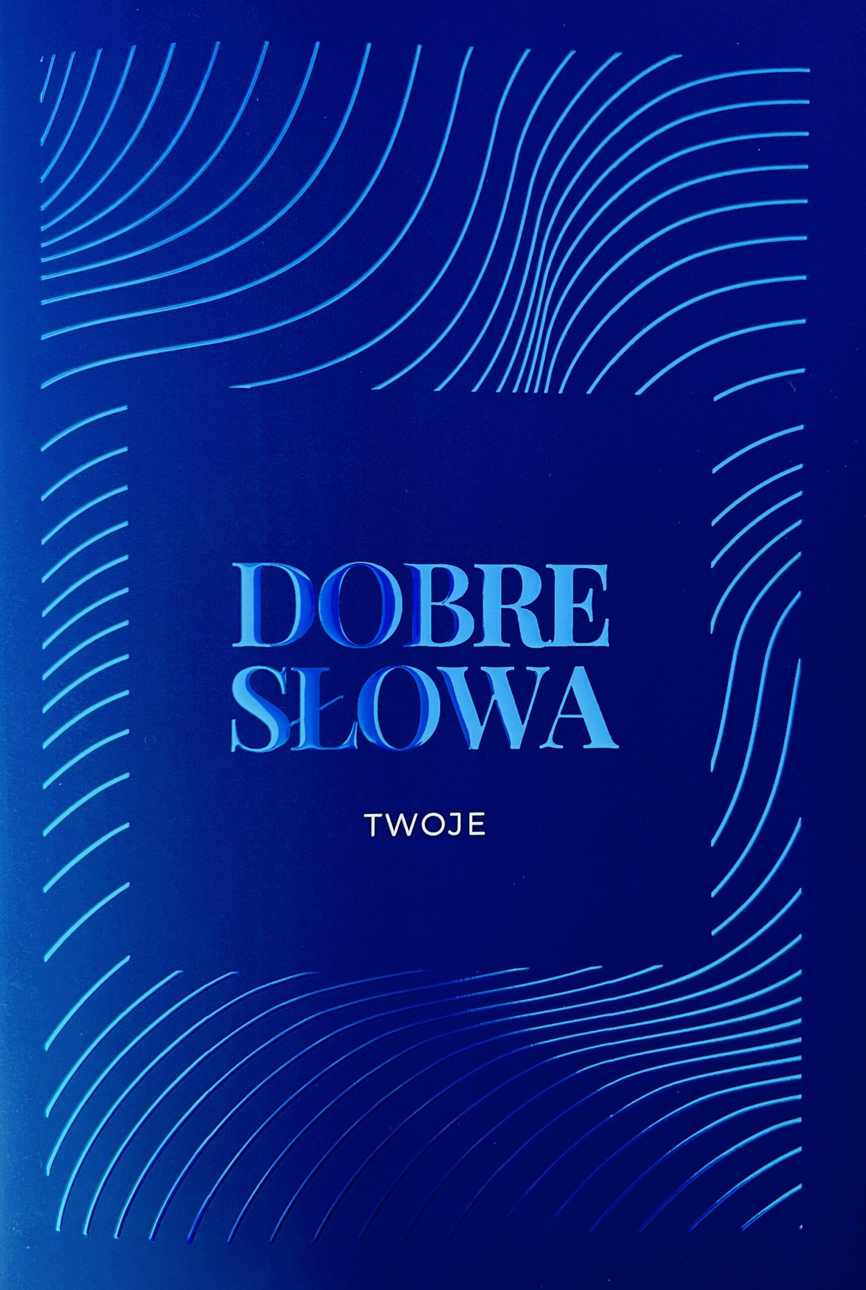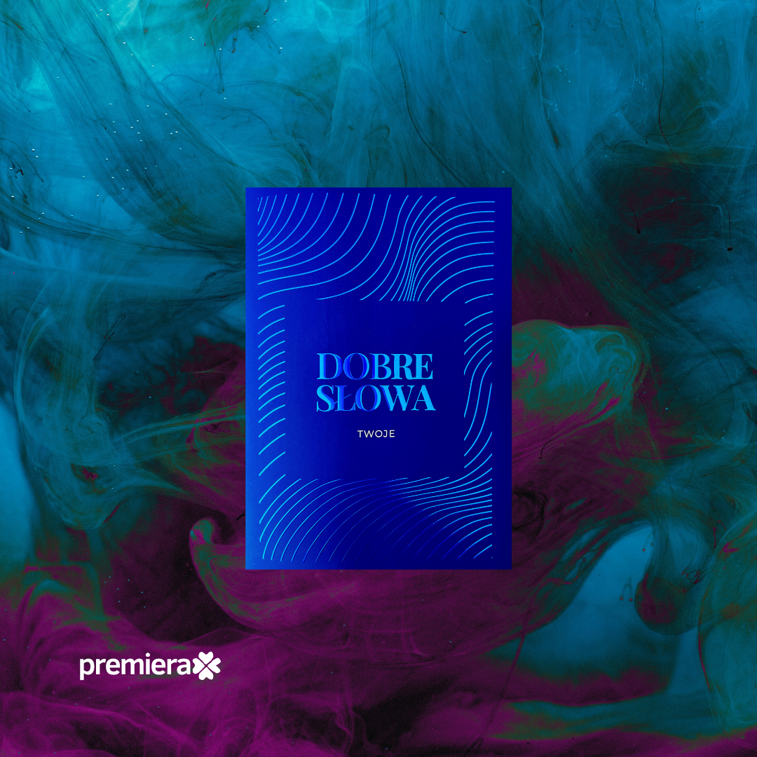 okładka kolorowa 350g foliowana delikatną aksamitną folią z niebieskim błyszczącym uszlachetnieniem wypukłym jak w kolorowej serii „Dobre słowa”